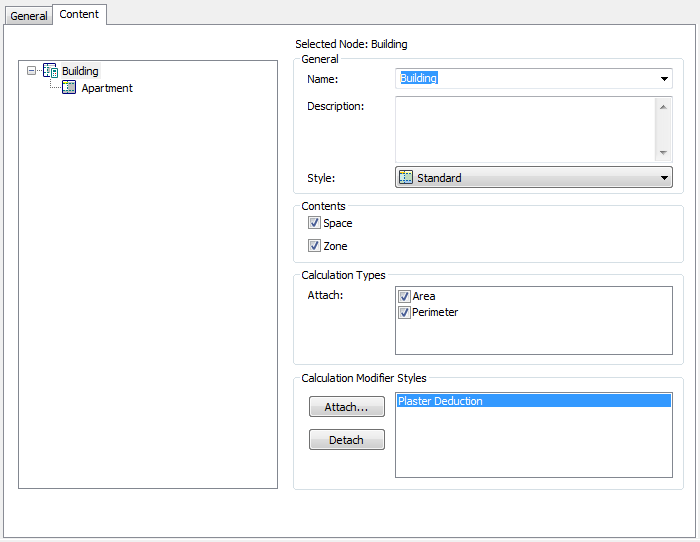 For example, if you have a Balconies zone node, you can attach a calculation modifier that reduces all calculated space values in this zone by 50 percent.