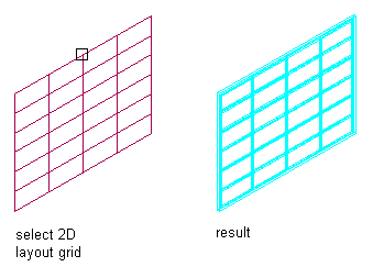 Use this procedure to create a curtain wall that is based on a 2D layout grid. If you already have 2D layout grids in a drawing, you can easily convert them to curtain walls. Or if you are already familiar with layout grids, it is an efficient way to create a curtain wall, and then experiment with the curtain wall commands to learn more about them.