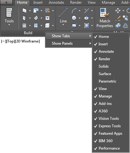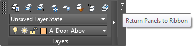 to indicate that the panel can be expanded. The expanded part typically contains commands that are less frequently used.