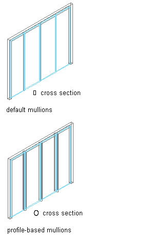 All curtain wall grids, including the primary grid, can have mullion definitions. The mullion of the primary grid defines the outer edges of the curtain wall. You can define the mullions by specifying a width and depth or by selecting a profile from which the mullion is extruded.