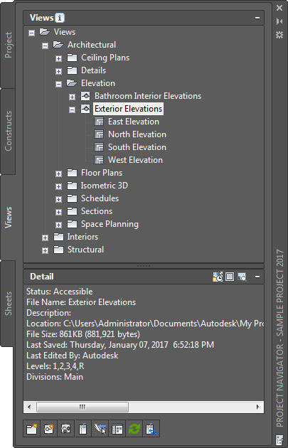 Model space views are displayed and opened in the Views tab of the Project Navigator.