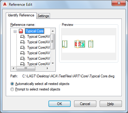 - In the Reference Edit dialog box, on the Identify Reference tab, select Prompt to select nested objects, and click OK.