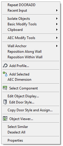 When you right-click in the drawing area, the content of the context menu depends on the currently selected object(s). For example, if one or more door objects are selected, a door-specific context menu is displayed as shown.