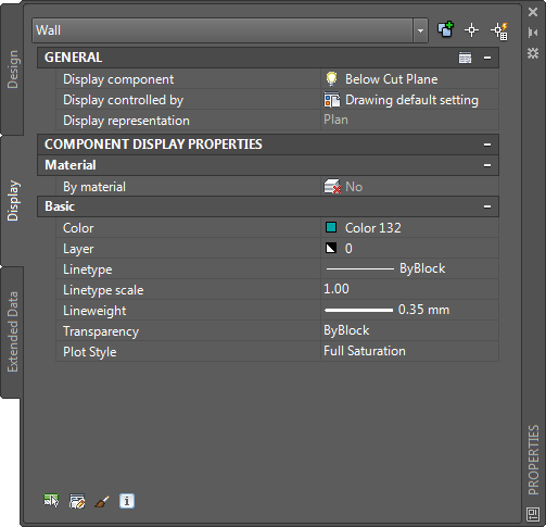 If you are a CAD manager, you will want to fully understand the display system structure and the display manager so that you can modify and organize default settings as necessary to implement your own display standards. But any user can quickly change the appearance of an object in a particular view by modifying values on the Display tab of the Properties palette.