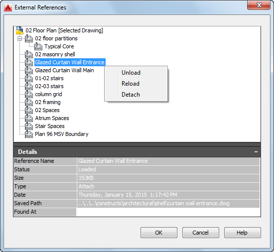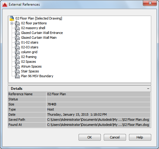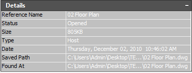 - Saved Path displays the saved path, if any, that is used to locate the xref. This path can be a full (absolute) path or a relative (partially specified) path.