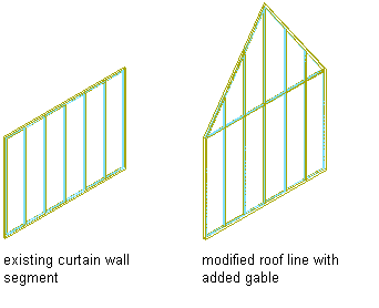 Use this procedure to add a gable to the roof line of a curtain wall by adding a vertex to the roofline.