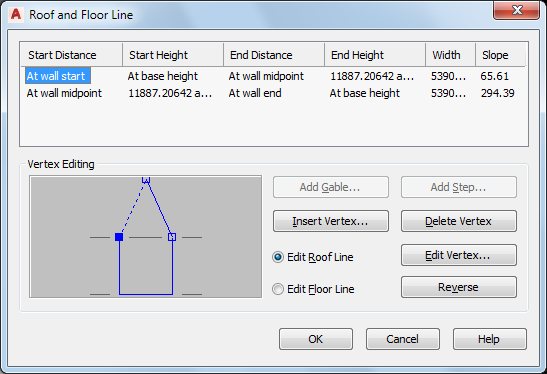 . A third vertex is added to the roof line halfway between the two ends of the roof line.