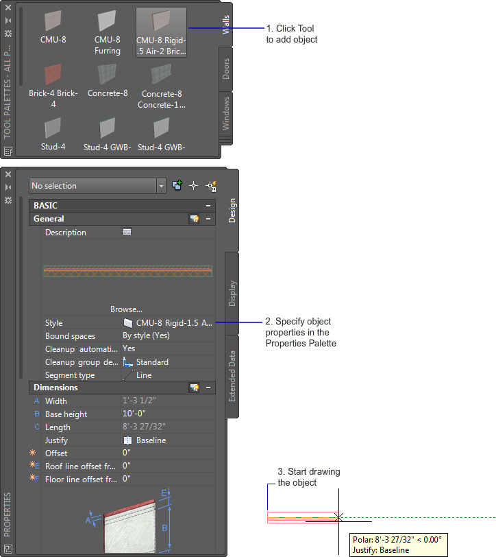 Note: Certain values can be set only when you are inserting the object; for example, the position of a door along the wall into which it is inserted can be defined only when you are inserting the door. You cannot change the position for an existing door later. Values that can be set only during insertion are marked with this symbol