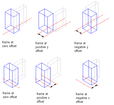 | X | Positive X offset moves the frame edge outward beyond the end of the curtain wall, while a negative X offset moves the frame edge inward toward the center of the curtain wall. |