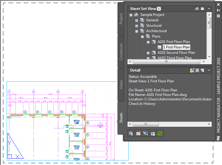 A sheet view is a paper space viewport on the sheet that is created when you drag a view drawing or model space view from the Project Navigator palette onto a sheet.