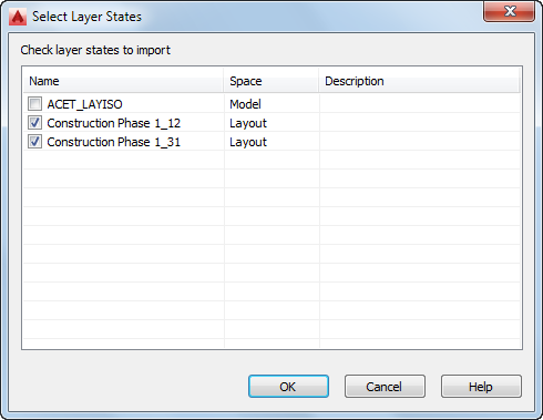 If the layer state is imported from a drawing and it contains a layer property, such as a linetype or plot style that is not loaded or available in the current drawing, that property is automatically imported from the source drawing.