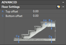 | specify the thickness of the floor finish material at the top floor of the stair | enter a value for Top Offset. |