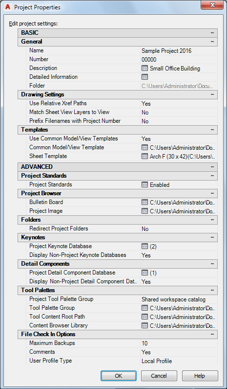 | Legacy project from Autodesk Architectural Desktop 2005 | pointing to new empty ATC file under \<ProjectName>\Standards\ WorkspaceToolPalettes\ <ProjectName>.atc | Created, but not displayed. |