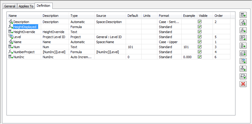 On the Definition tab for the SpaceObjects property set definition