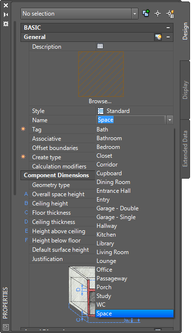 A list definition is a list of names that may be used as allowed names for spaces or zones. List definitions can be attached to a space style or a zone style, so that the list of names is available on the Properties palette when you create or edit a space or zone with that style.