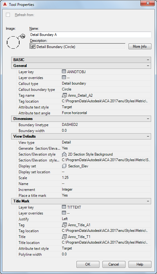 | Boundary linetype | Detail Boundary | Defines the linetype of the detail boundary. |