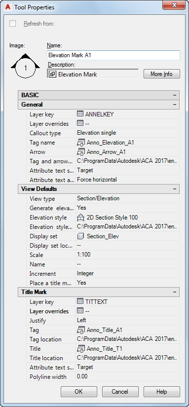 | Arrow | Section/ Elevation | Define the block for the section/elevation mark arrow. |