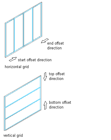 | the start point of the curtain wall baseline and the start of the first cell in a horizontal grid | enter a value for Start Offset. |