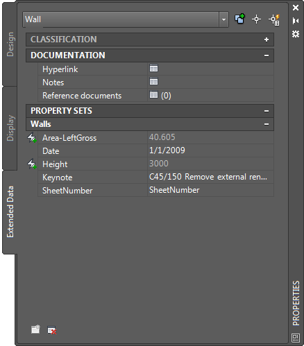 Wall properties with keynote, date, and sheet number fields