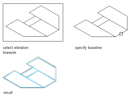 If you draw your linework in the XY plane (in Plan view) and accept the default baseline, the resulting curtain wall is displayed as it is projected in the Z direction.