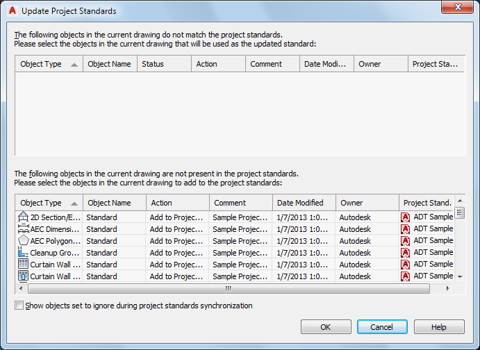 In this case, the not standardized style will not be listed again in future updates, except if you select Show objects set to ignore during project standards synchronization or remove the Ignore flag from the style in Style Manager.