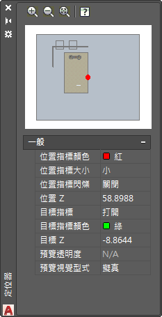 指定目標位置指示標的 Z 座標。您可以在繪製區中指定一點或輸入一個新值,以修改此設定。