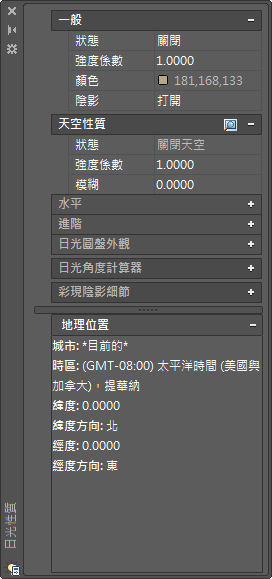 顯示日光與地平線之間垂直方向的角度。最大為 90 度,或正垂。此設定是唯讀的。