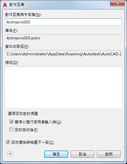 指定是否要掃瞄動作巨集以檢查目前圖面狀態與巨集錄製後的圖面狀態之間的不一致。