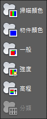 按一下「點雲」頁籤 「視覺化」面板 顏色型式化圖示列,選擇以下其中一個型式化選項。