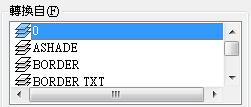 列示您可以將目前圖面中的圖層轉換到的圖層。