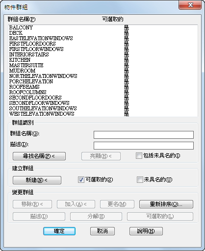 使用「群組名稱」和「描述」下面的名稱和描述,從選取的物件建立一個新群組。