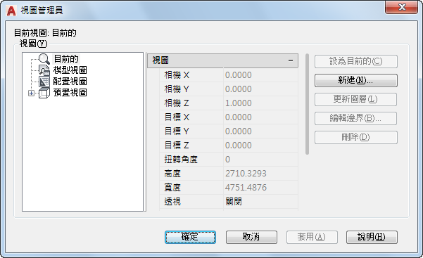 顯示「新視圖/快照性質」對話方塊或「新視圖」對話方塊。