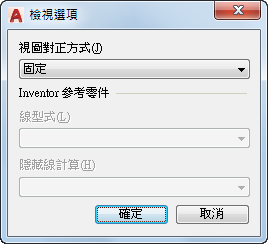 此對話方塊可指定視圖幾何圖形的錨定方式,以及如何顯示「Inventor 參考零件」。