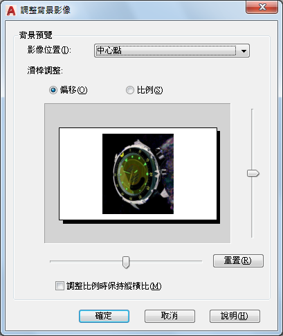 指定影像偏移控制 (如果選取「拉伸」做為影像位置,則無法使用)。