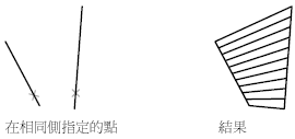 用做直紋網面「軌跡」的兩個物件必須同為開放或封閉。您可以將點物件和一個開放或封閉物件組成一對。