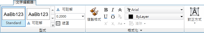註: MTEXTTOOLBAR 系統變數可控制「文字格式」工具列的顯示。