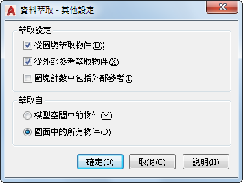 僅包含模型空間中的物件,忽略圖紙空間中的物件。