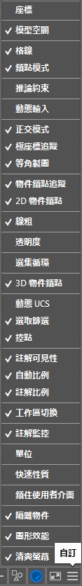 依預設,「座標顯示」不會出現在狀態列中。若要在狀態列上顯示座標,您可以從狀態列「自訂」按鈕選取「座標」。