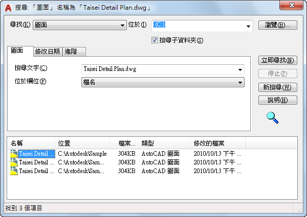 指定您要尋找的圖面、圖塊、圖層、外部參考、或其他內容的名稱。