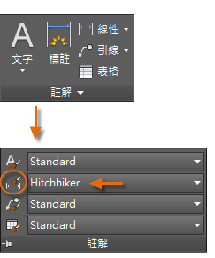 在 Hitchhiker 這個案例中,目前的標註型式會顯示在「註解」面板的下拉式清單中。
