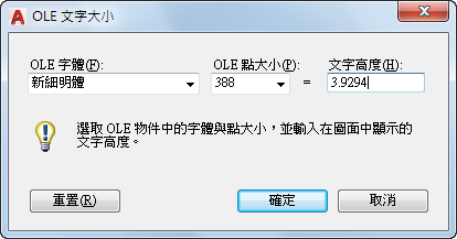在圖面中插入 OLE 物件時,將該物件還原至其原來大小。