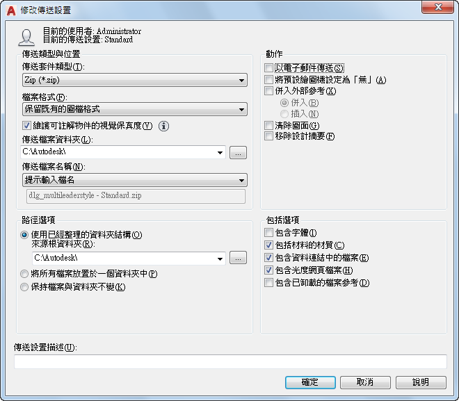 傳送圖紙集時,來源根資料夾也包含圖紙資料 (DST) 檔。(不適用於 AutoCAD LT)。