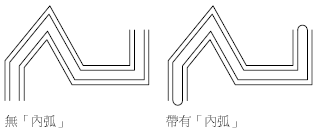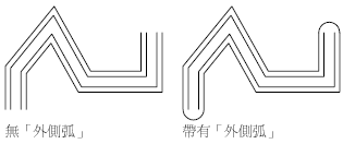 在每一對內側元素之間顯示一條弧。如果有奇數個元素,則不連接中心線。舉例來說,若有六個元素,內側弧將連接第二與第五個、第三與第四個元素。如果有七個元素,則內側弧會連接元素 2 和 6,以及元素 3 和 5。元素 4 會沒有連接。