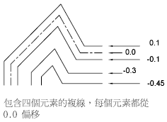 顯示目前複線型式中的所有元素。型式中的每個元素均由其自複線中央的偏移、顏色和線型來定義。元素永遠按其偏移量的降序來顯示。
