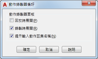 「動作錄製器偏好」對話方塊