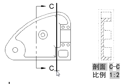 在剖面視圖置於繪製區後加以移動,但不強制結束指令。