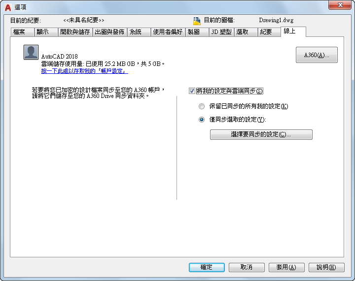 設定可供線上使用 Autodesk A360 的選項,並讓您能存取儲存在雲端帳戶中的設計文件。
