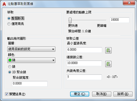 限制處理的點數並估算萃取幾何圖形的時間。