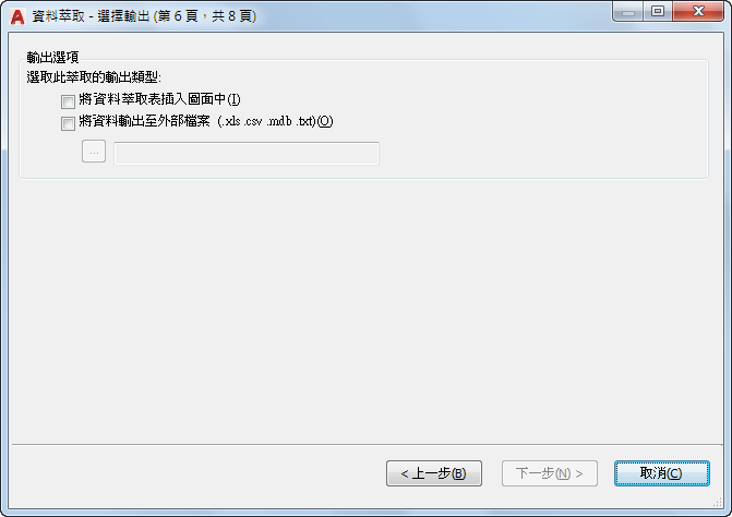 此資訊用於在目前圖面中建立資料萃取表,或被儲存至外部檔案,或二者皆有。