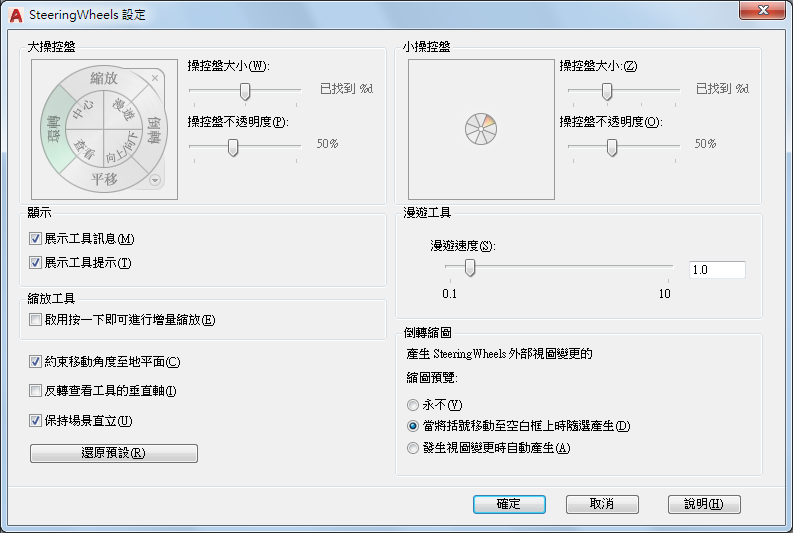 指定當視圖變更發生在 SteeringWheels 之外時,不產生預覽縮圖。